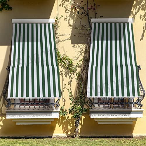 Rideau Soleil Crochet et Anneaux Tissus Résistants Vert & Bl...