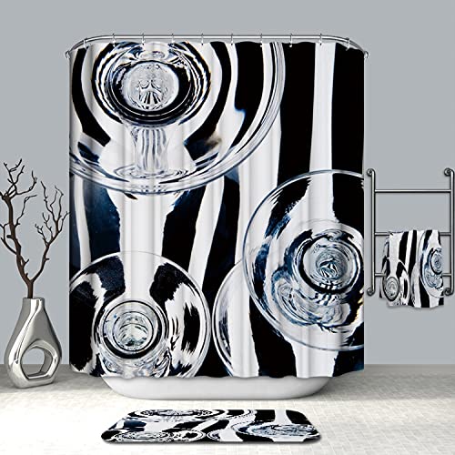 Rideau de douche vintage 3D noir et blanc polyester, 150 x 1...