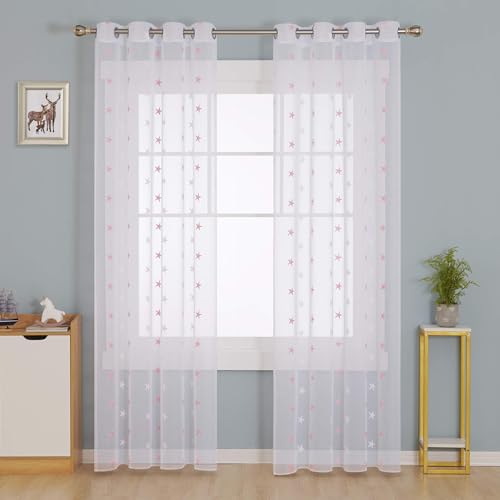 Deconovo Lot de 2 Rideaux Salon Voilage Brodé Étoile Rideau...