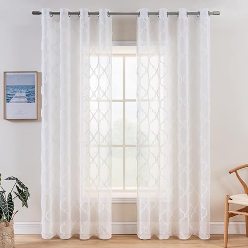 CUTEWIND 2 Pièces Rideau Voilage Blanc Semi-Transparent Ride...