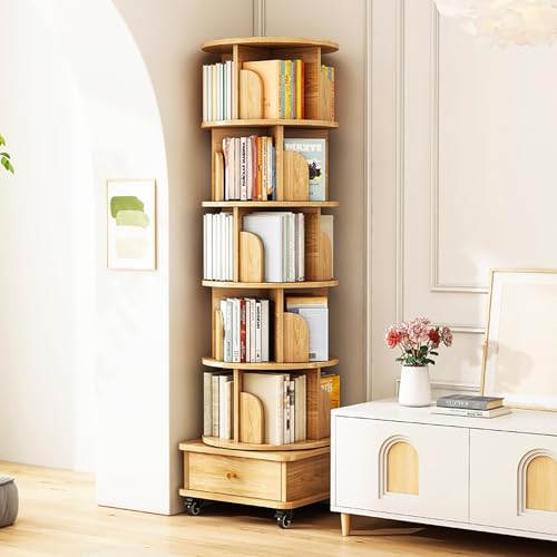 ELIKBH Bibliothèque rotative à 360° en Bambou, Tour de Range...