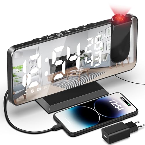 SZELAM Réveil à projection, miroir LED de 7,4 pouces, projec...