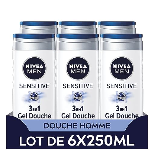 NIVEA MEN Gel douche Sensitive (lot de 6 x 250 ml), Gel douc...