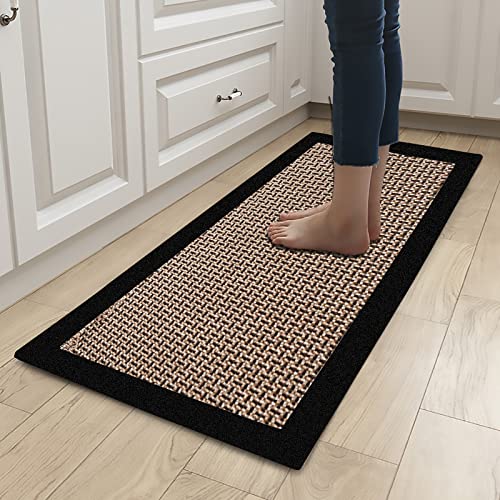 Tapis de cuisine noir 50x120 cm antidérapant coton lin