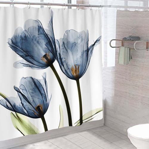 SAVOUSWEET Fleurs Bleues Rideau de Douche 180x180 cm