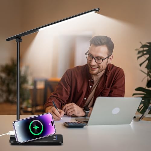 Lampe Bureau 10W, 15 Niveaux Dimmables, 5 Couleurs LED