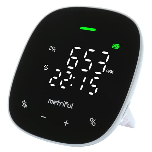 Metriful CO2 Détecteur Alarme Qualité Air Batterie Rechargea...