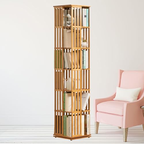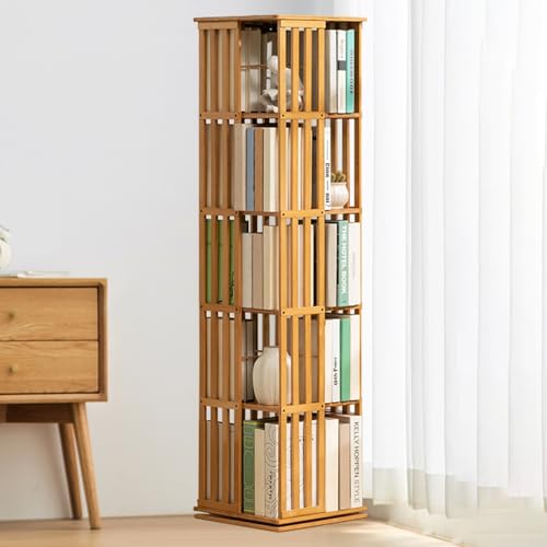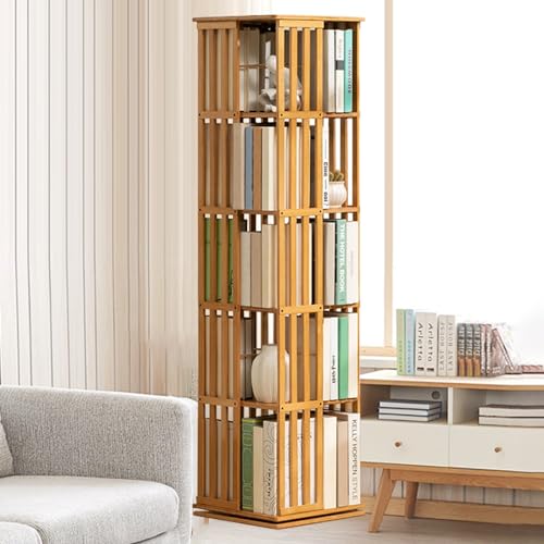 ELIKBH Bibliothèque Rotative à 360° Étagère de Sol en Bambou...