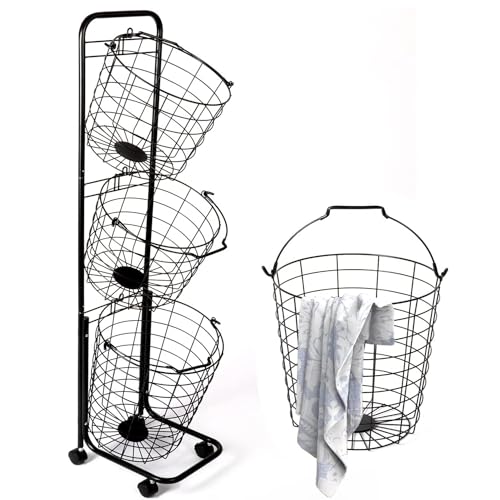 Panier à linge métallique mobile 3 compartiments, 126 x 36 x...