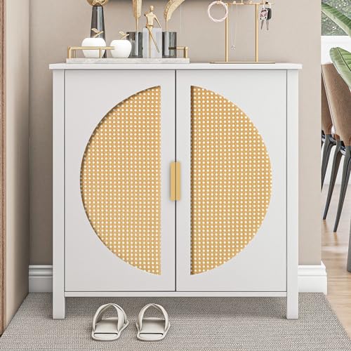 Buffet blanc avec 2 portes en rotin, armoire de rangement à...