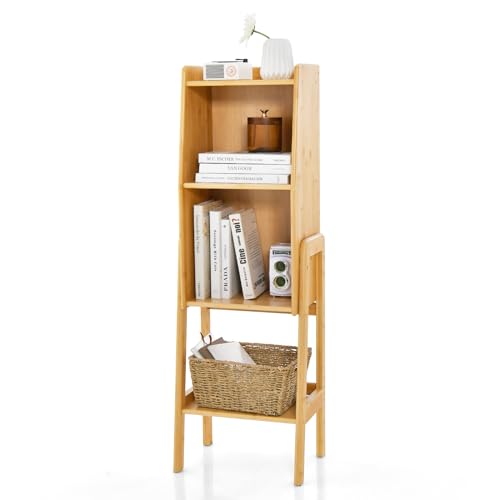 GOPLUS Bibliothèque Étagère à 4 Niveaux en Bambou, Pieds et...