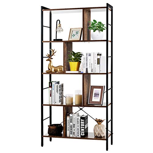 DREAMADE Bibliothèque à 5 Niveaux avec Style Industriel, Éta...