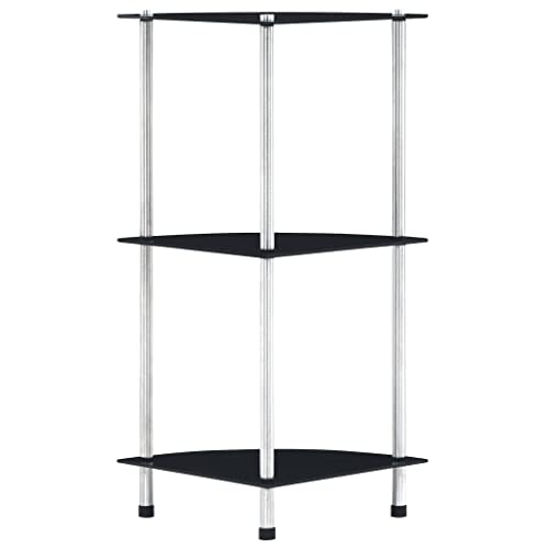 Mengtu Étagère à 3 niveaux Noir 30 x 30 x 67 cm en verre tre...