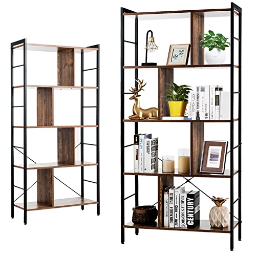 Tribesigns Bibliothèque Industrielle à 5 Niveaux avec 2 tiro...
