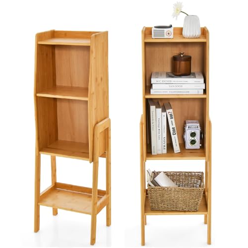 GIANTEX Étagère à livres en bambou à 4 niveaux avec bord sur...