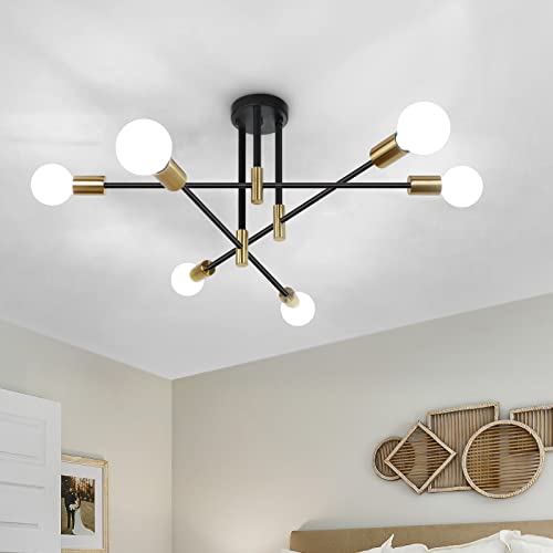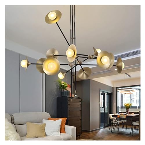 Plafonnier KMai Pem Doré Noir Lustre Sputnik 6 Lampes Indust...
