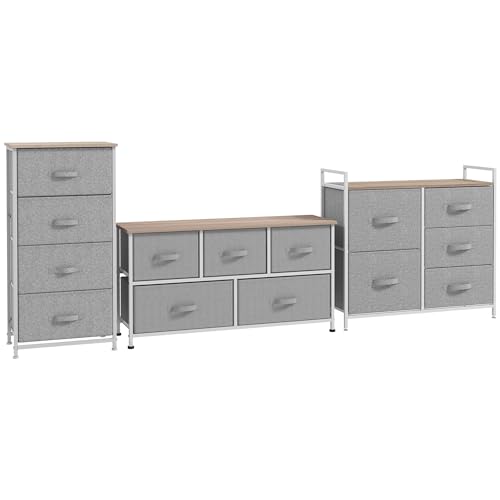 Lot de 3 commodes Tissu Meuble Acier Blanc avec tiroirs non-...