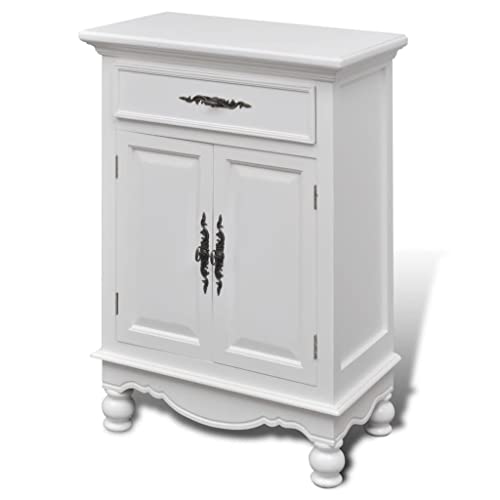 XL Armoire Bois Blanc avec 2 Portes et 1 Tiroir
