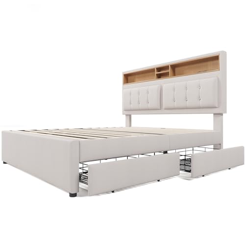 Xinzi Lit rembourré 160x200 cm, tiroirs 4, tête réglable, bo...