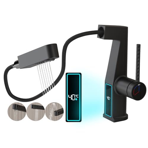 Robinet Noir Mat Extractible 3 Modes LED Mitigeur Chaude-Fro...