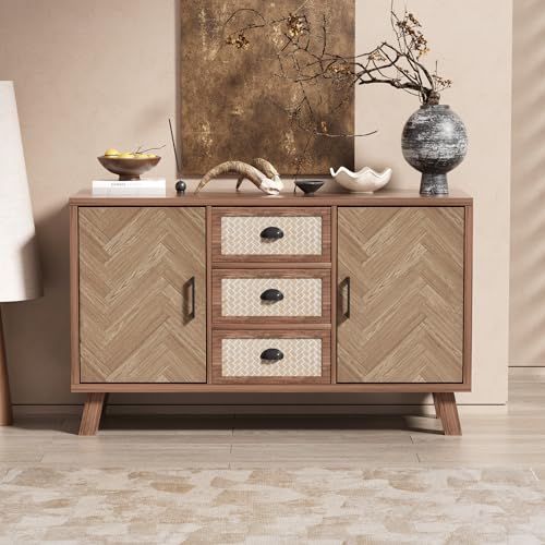 KecDuey Buffet 120 x 40 x 80 cm, avec motif à chevrons, troi...