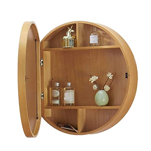 Armoire toilette ronde, rangement murale avec cadre bois, 3...