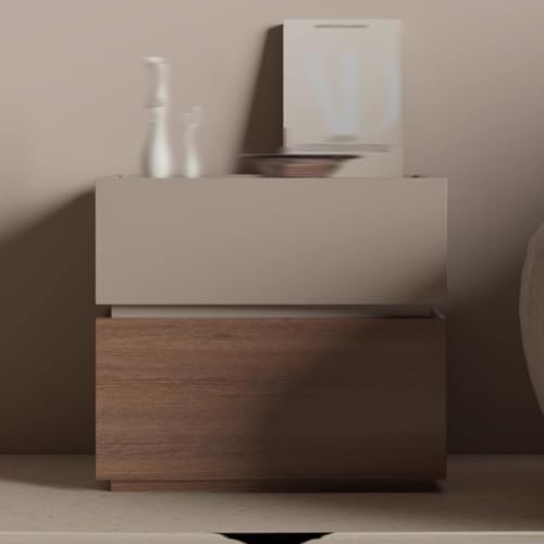 Table de Chevet Moderne, 2 tiroirs, Design KhakiplusGray