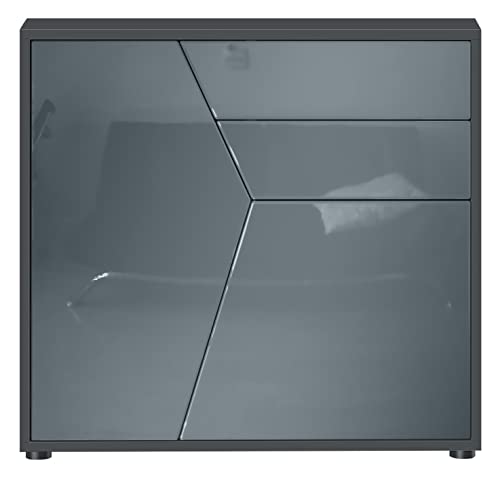 Vladon Buffet Commode Noir/Bordeaux Haute Brillance 79 x 74...