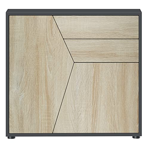 Buffet Vladon 2 portes, Noir Mat/Chêne Nature 79 x 74 x 36 c...