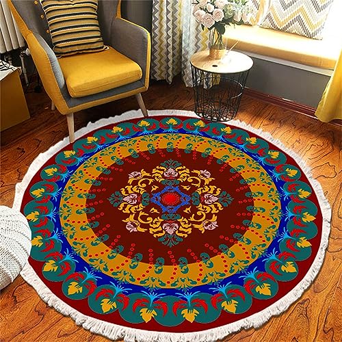 Tomifine Tapis Bohème Rond Lavable Coton Sol d'Entrée