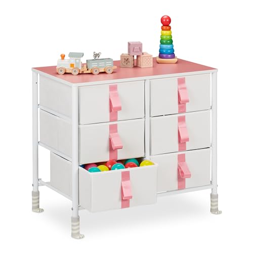 Relaxdays tiroir enfant 6 tiroirs, blanc rose
