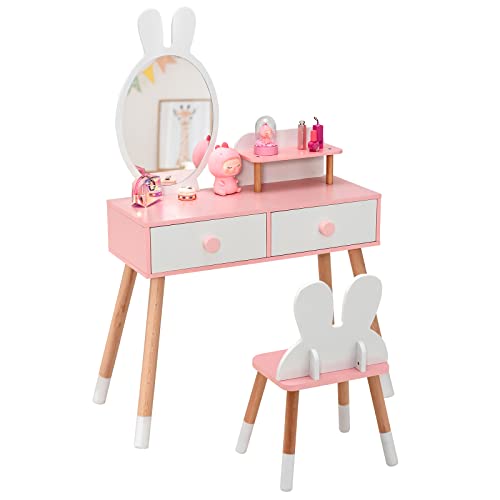 Dreamade 2 en 1 Coiffeuse Enfant Fille Miroir Amovible & Tab...