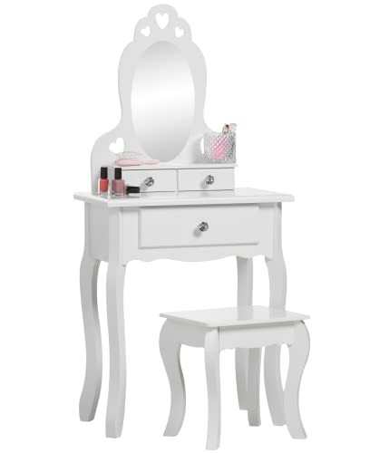 Runesol Coiffeuse Enfant Tabouret Miroir Petite Toilette Enf...