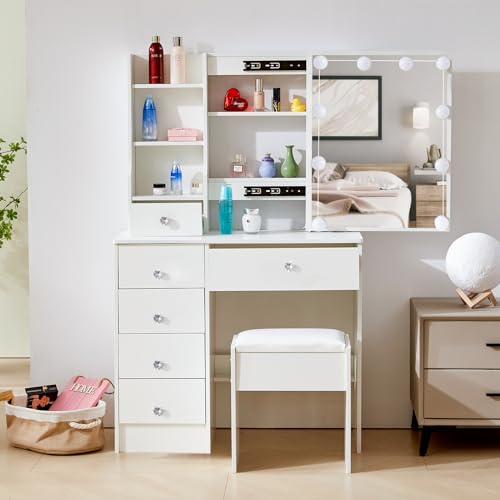 Buildonely Coiffeuse LED avec Miroir et 3 Couleurs, 6 Tiroir...