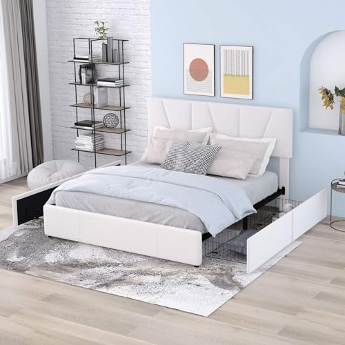 KOMH Rembourré Double Plateforme avec Tiroirs et Rangement