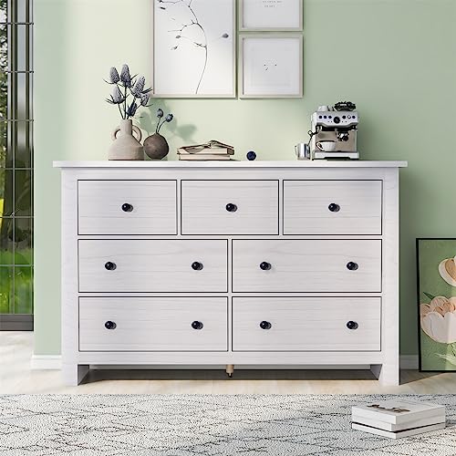 Sweiko - Commode de 139,7 cm avec 7 tiroirs - Blanche - Buff...