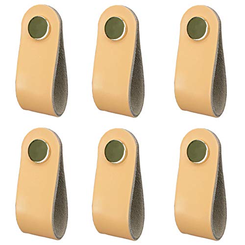 Poignée en cuir, boutons de tiroir en cuir, 6 poignées de ti...