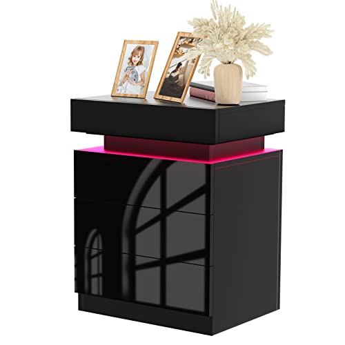 VILOLLE Table de Chevet LED, Table d'Appoint Nior, Table de...