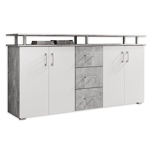 Stella LIFT Highboard avec étagère béton blanche - Armoire d...