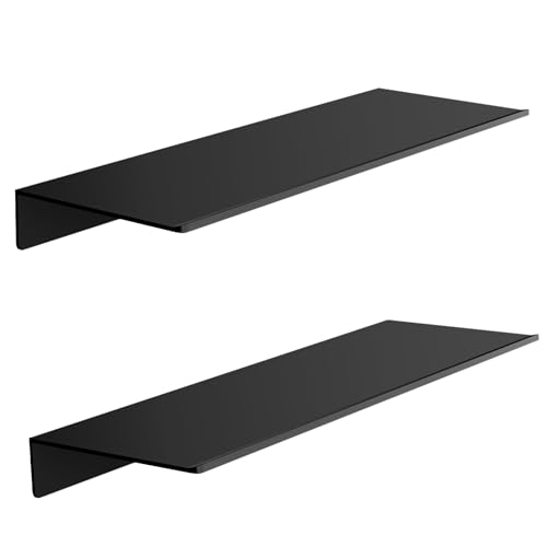 Étagère murale métal flottante longue 40cm, lot de 2, noire.