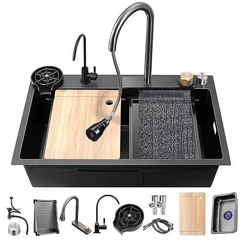 Noir 304 acier inoxydable nanowaterfall évier de cuisine à b...