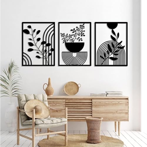 3 Panneaux bohème métal wall art Abstrait minimaliste géomét...