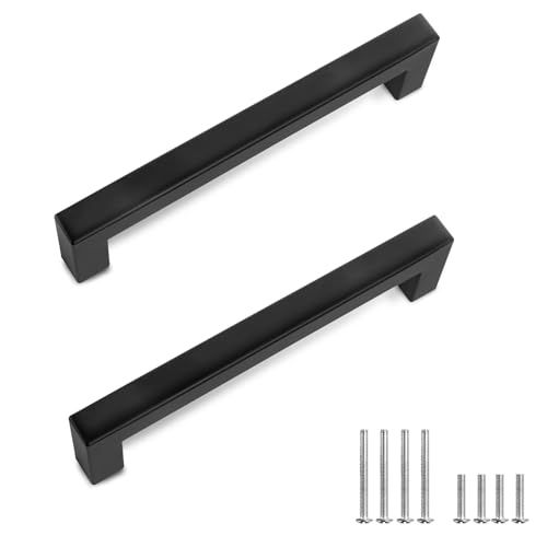 2 Poignées d'armoire noir mates acier inoxydable, 160mm entr...