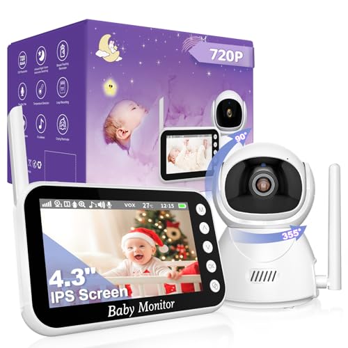 ?【Grand Écran 4,3 Pouces 720P】Notre babyphone camera utili...