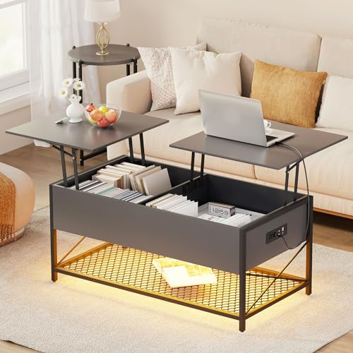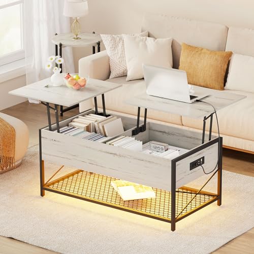 Lvifur Table Basse Relevable Extensible, LED Table de Salon...