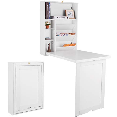 Bureau mural rabattable en MDF avec étagère intégrée, 82 x 1...