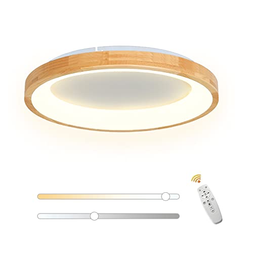 VOMI Luminaire LED Plafonnier Bois Lampe de Plafond Dimmable...