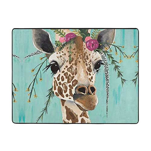 Girafe avec tapis floral = > 160 x 114 cm, doux au toucher,...