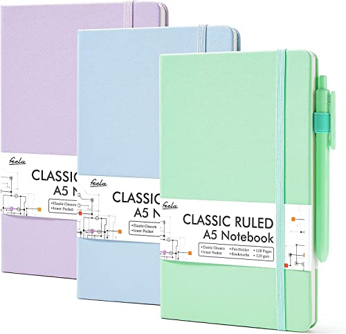 Feela 3 carnets notes A5 stylos noirs, carnet couverture rig...
