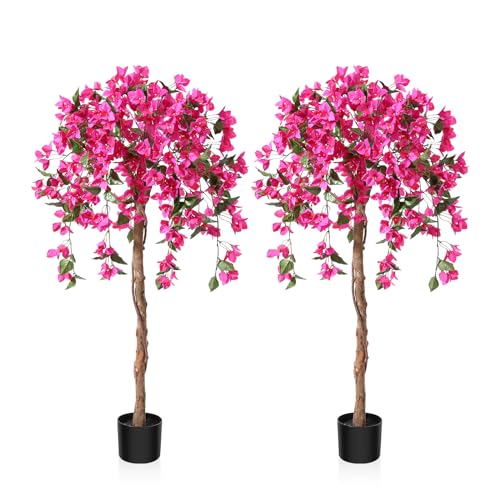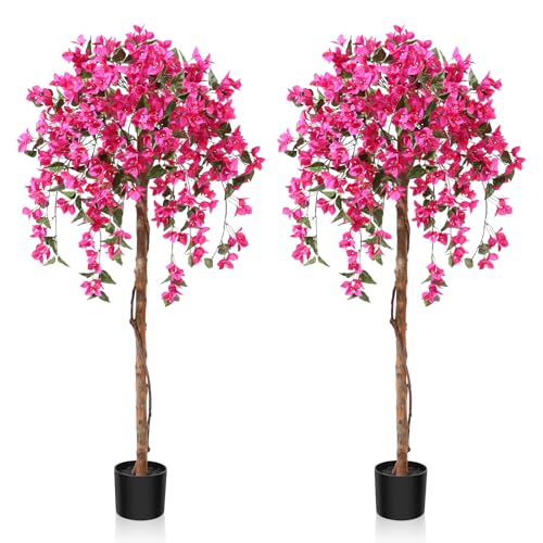 Fopamtri Plante Artificielle avec Fausses Fleurs Rose 120cm...